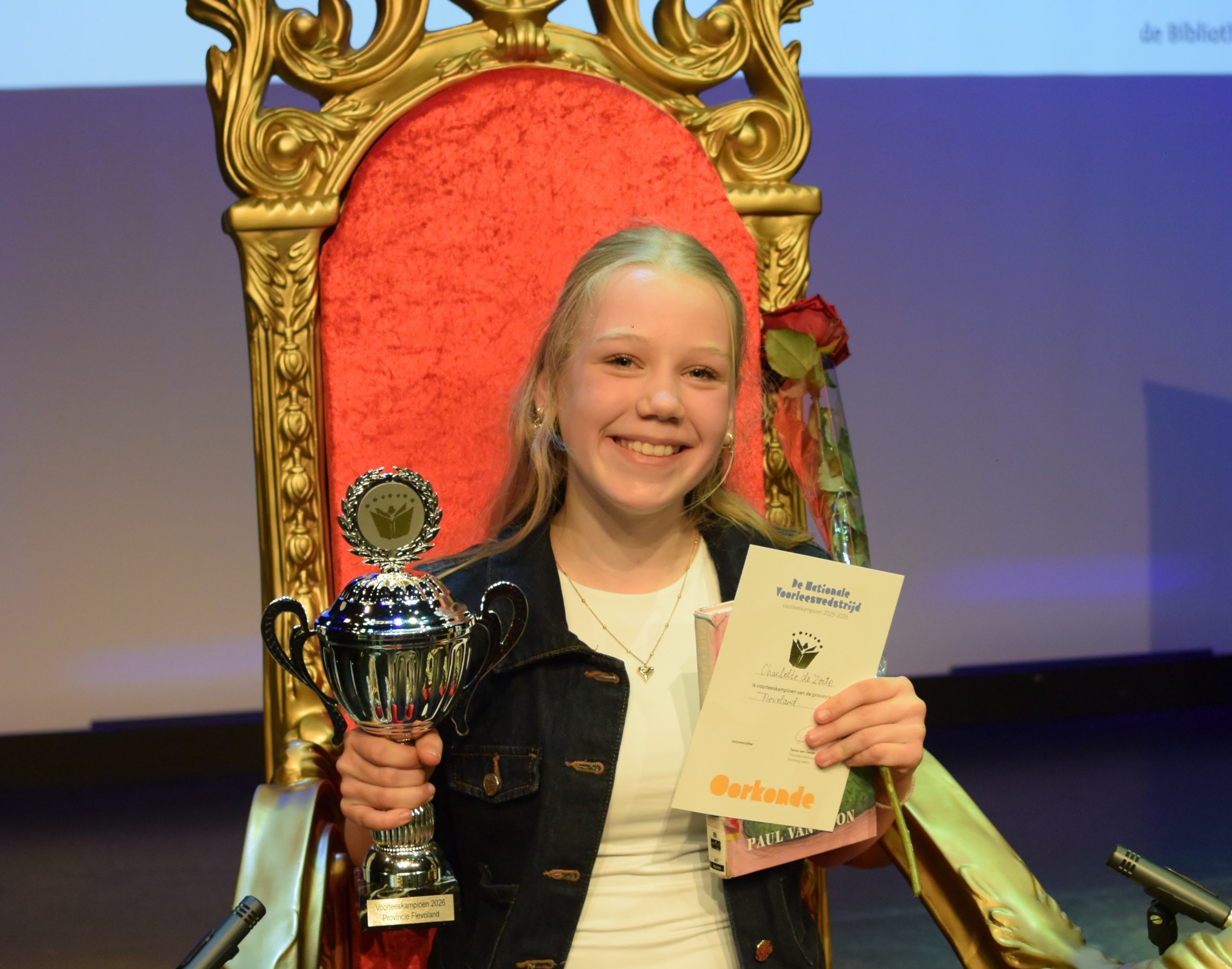 Lelystad, 16 april 2026 – Flevoland heeft er weer twee voorleeskampioenen bij. Tijdens de provinciale finales op 16 april in De Kubus in Lelystad sleepten Charlotte de Zoete en Alan Said, allebei uit Almere de titels in de wacht.